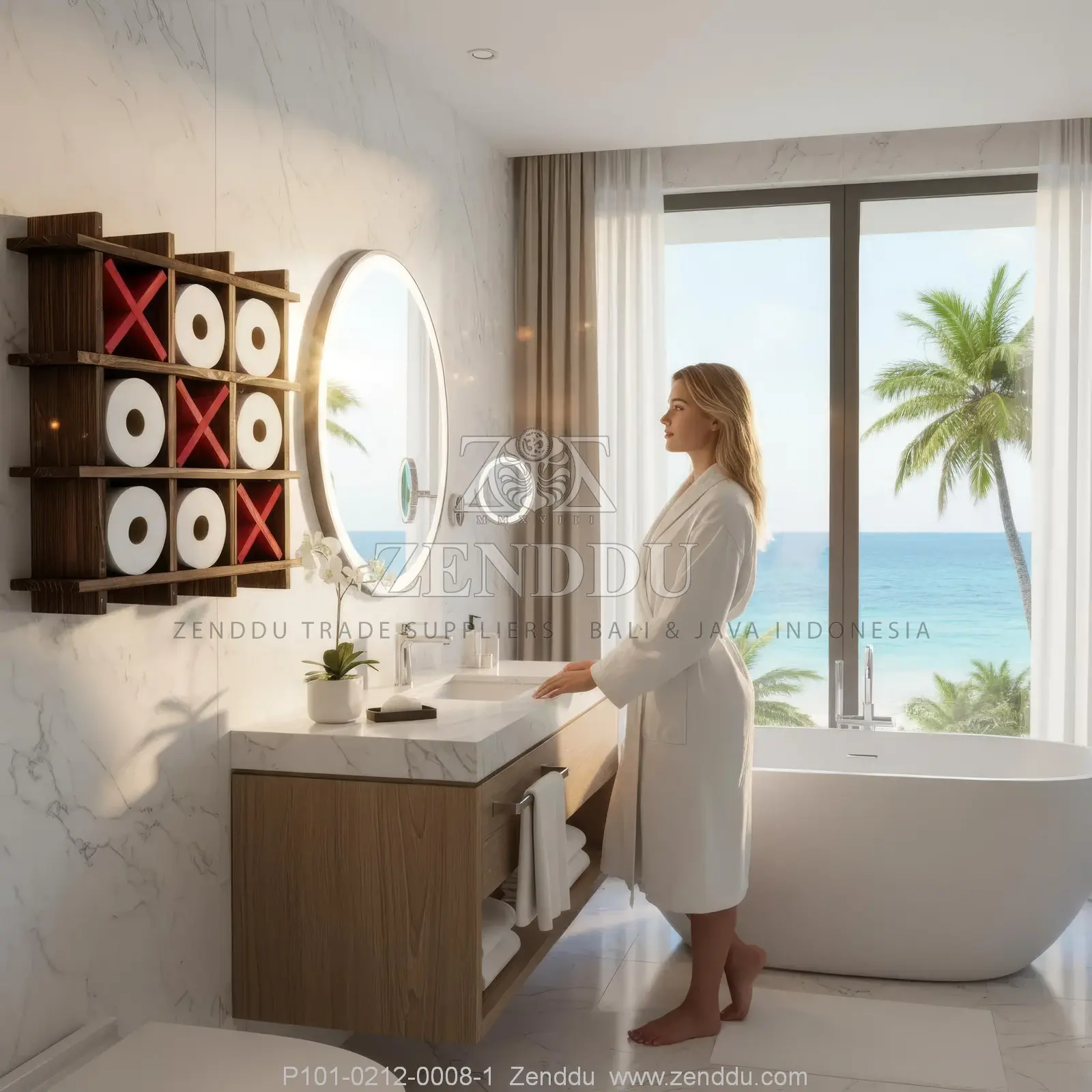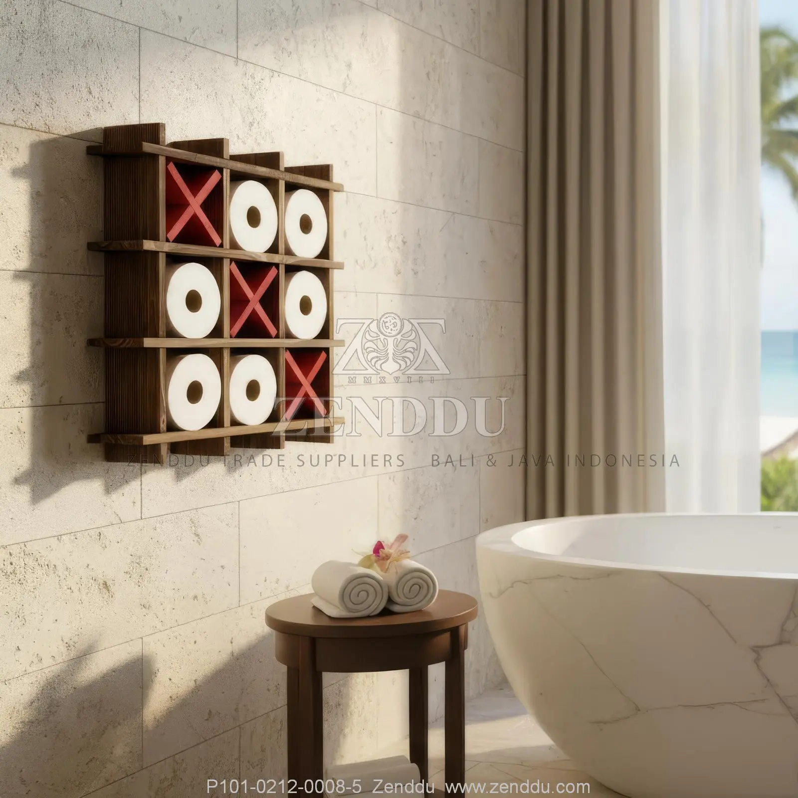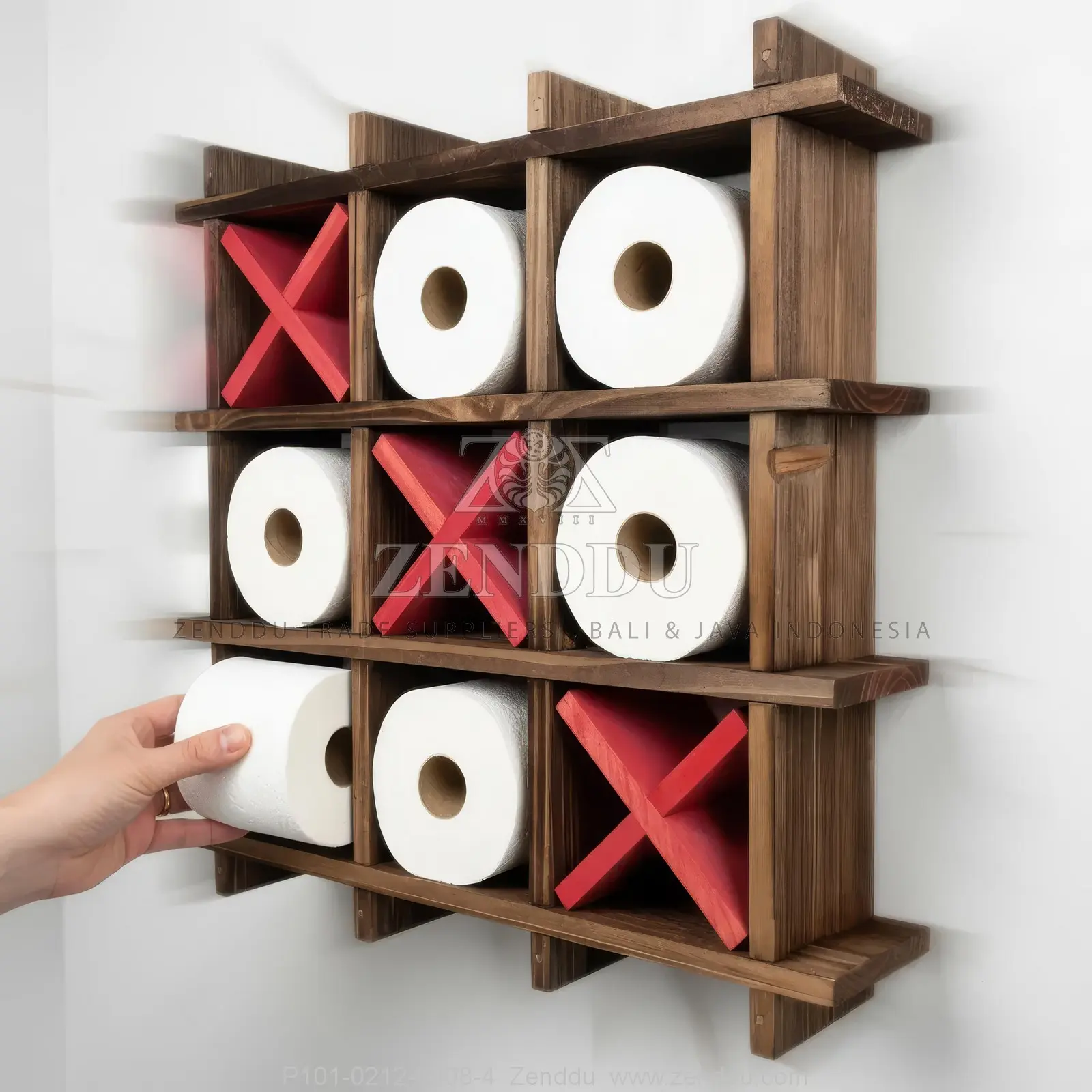 (Toilet Roll Holder) Material: Wood: (Teak wood), Finish: (Same as picture), Location: Java