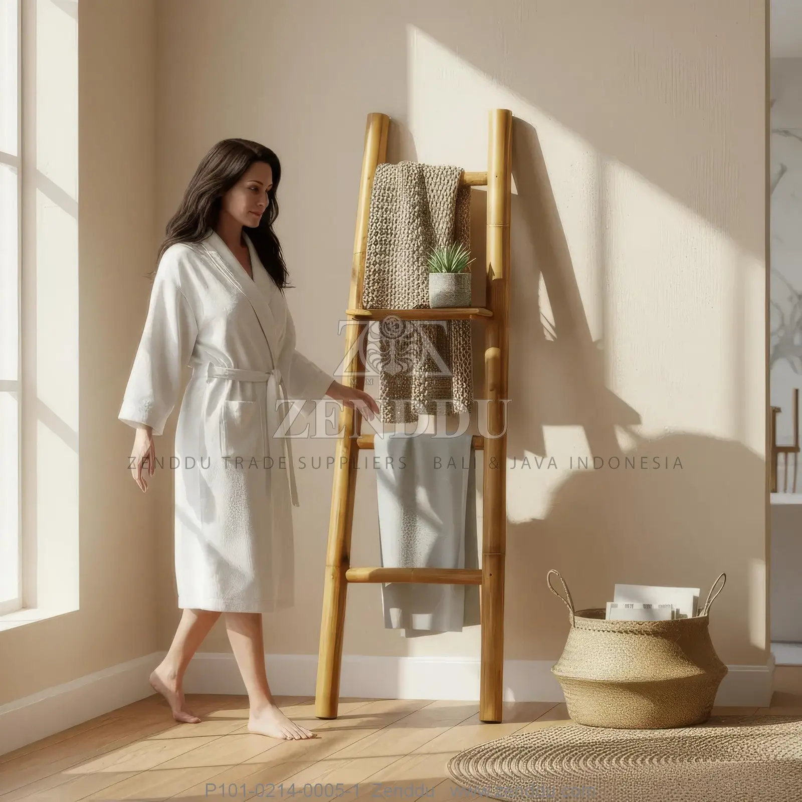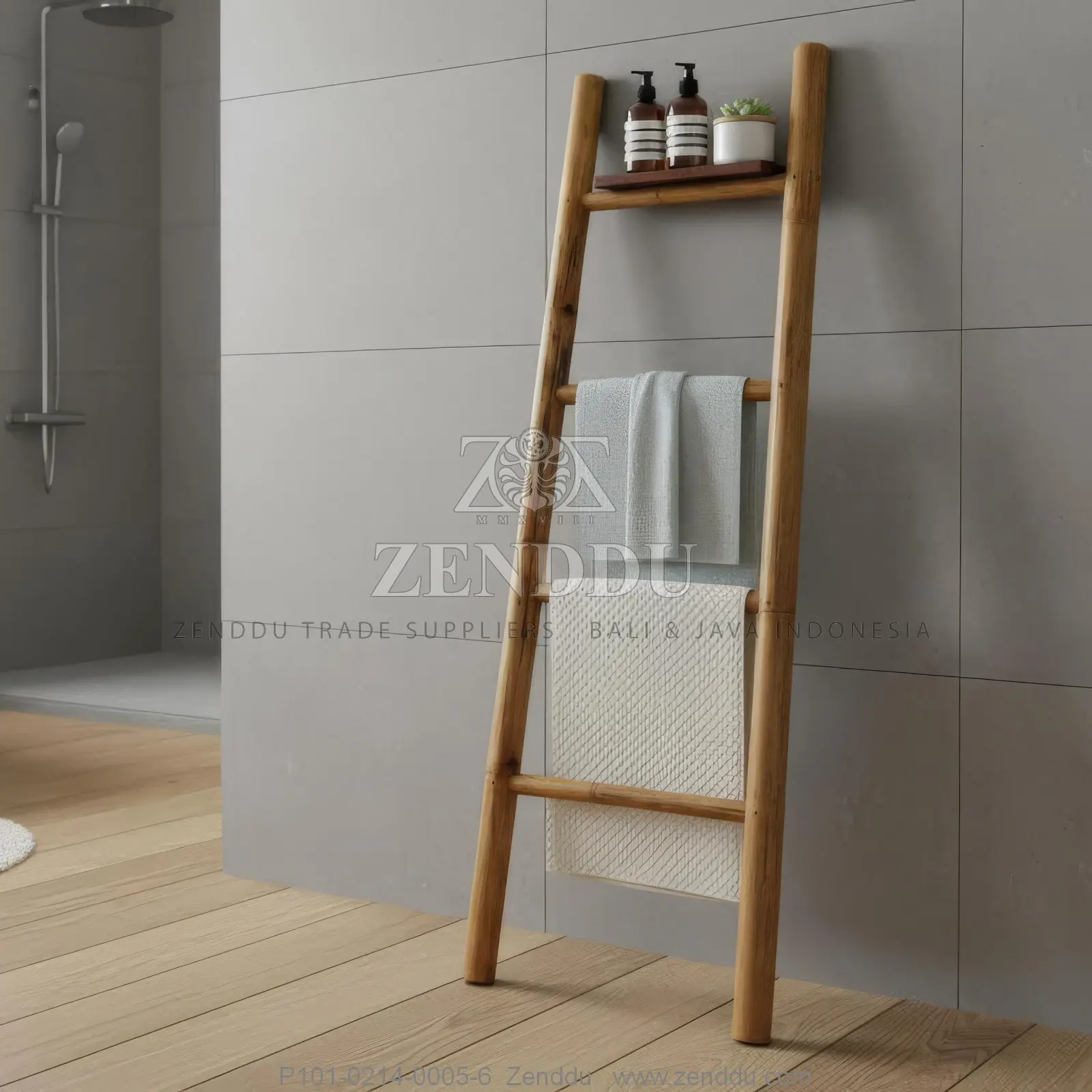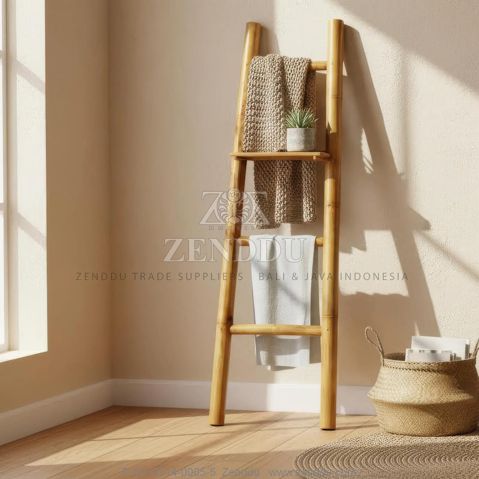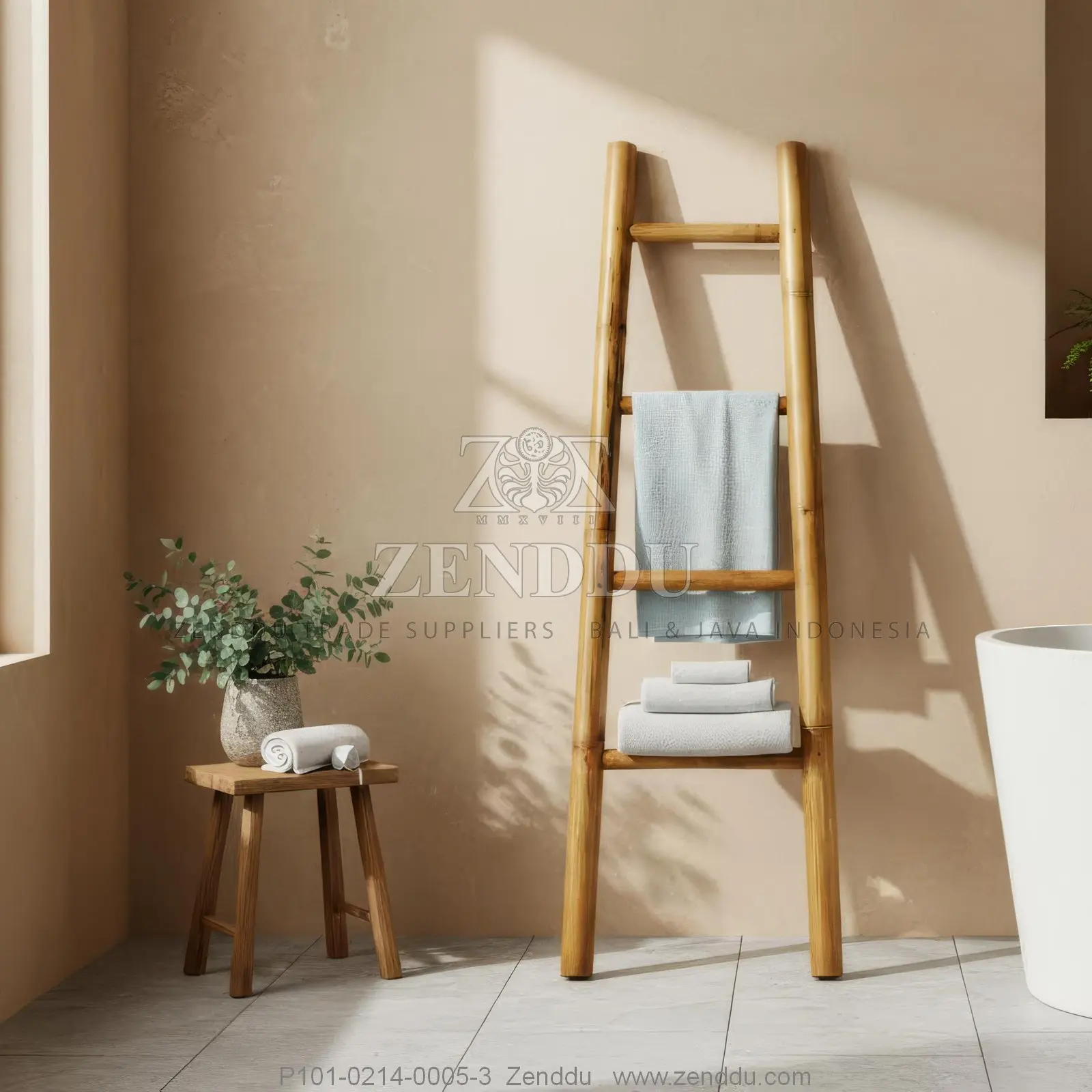 (Towel Ladder) Material: Natural Fiber: (Bamboo), Finish: (Same as picture), Location: Java