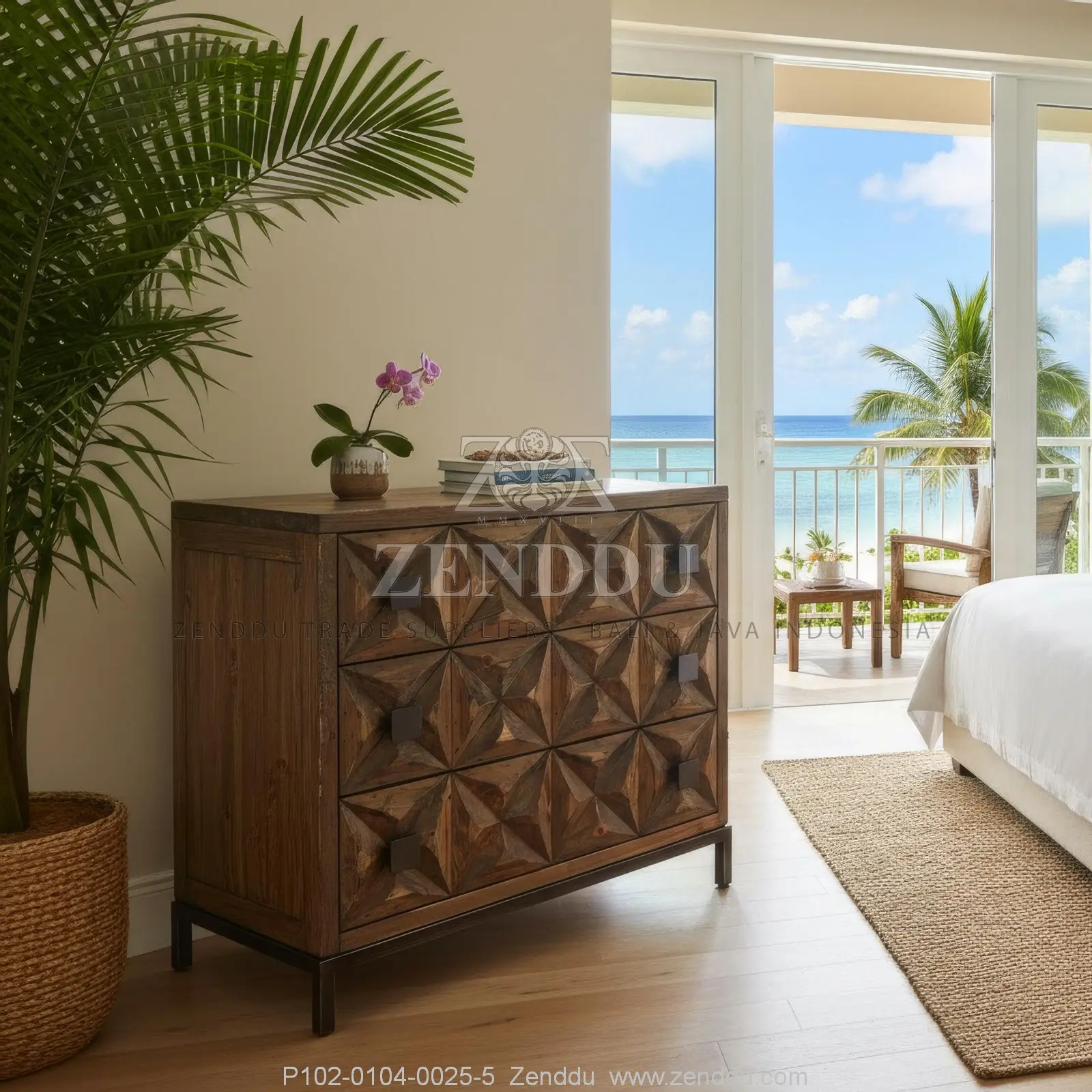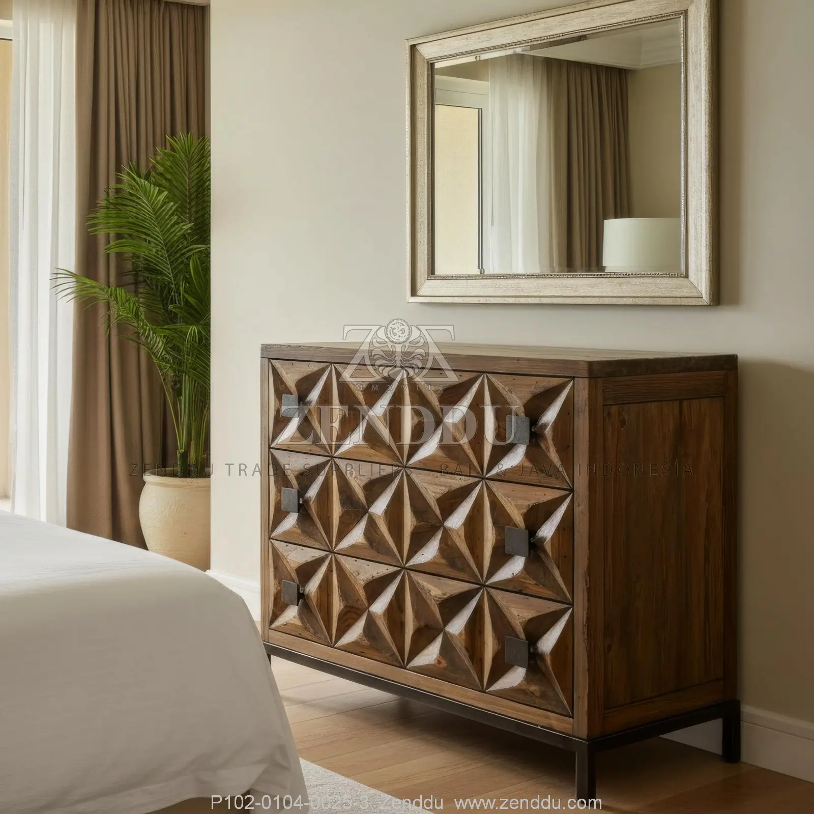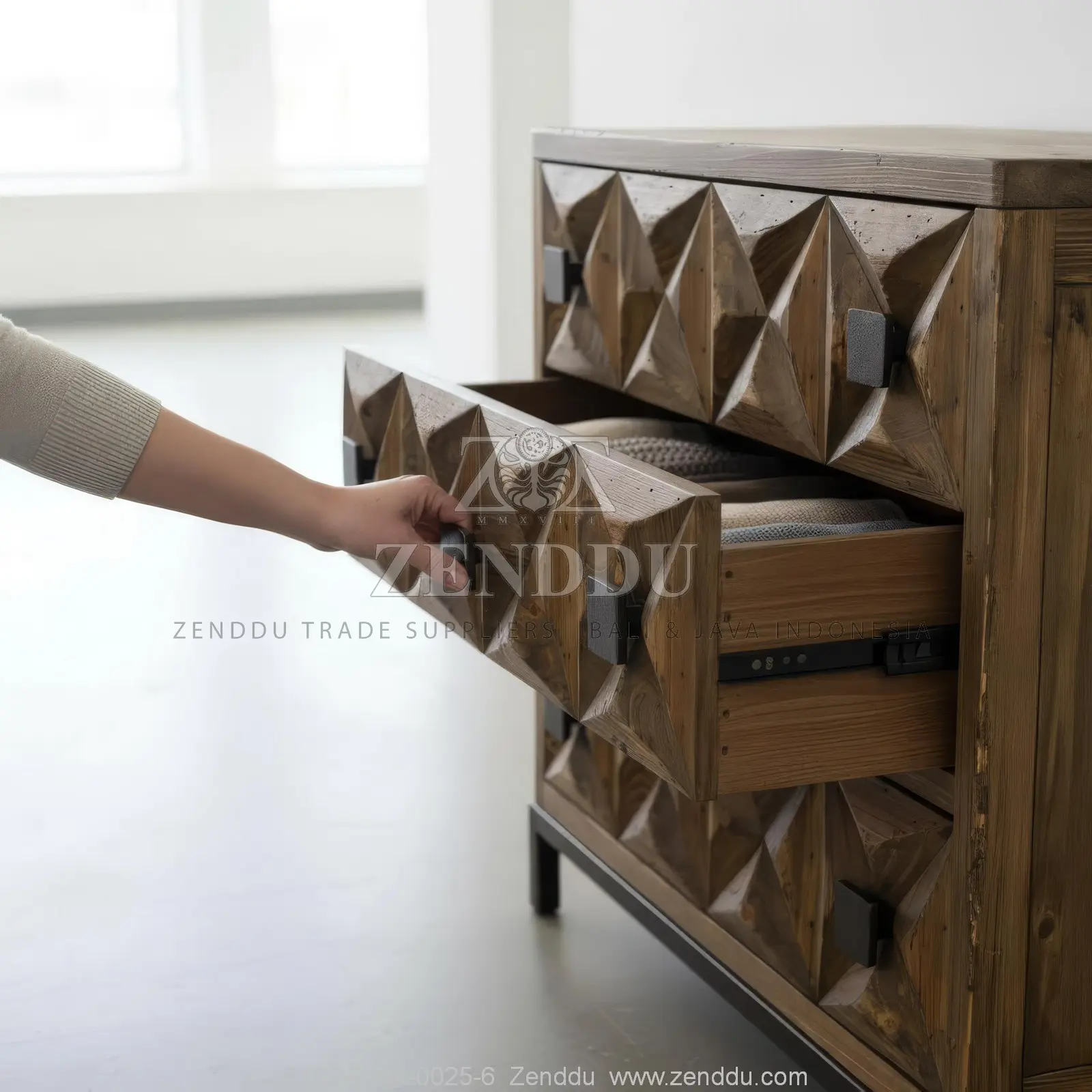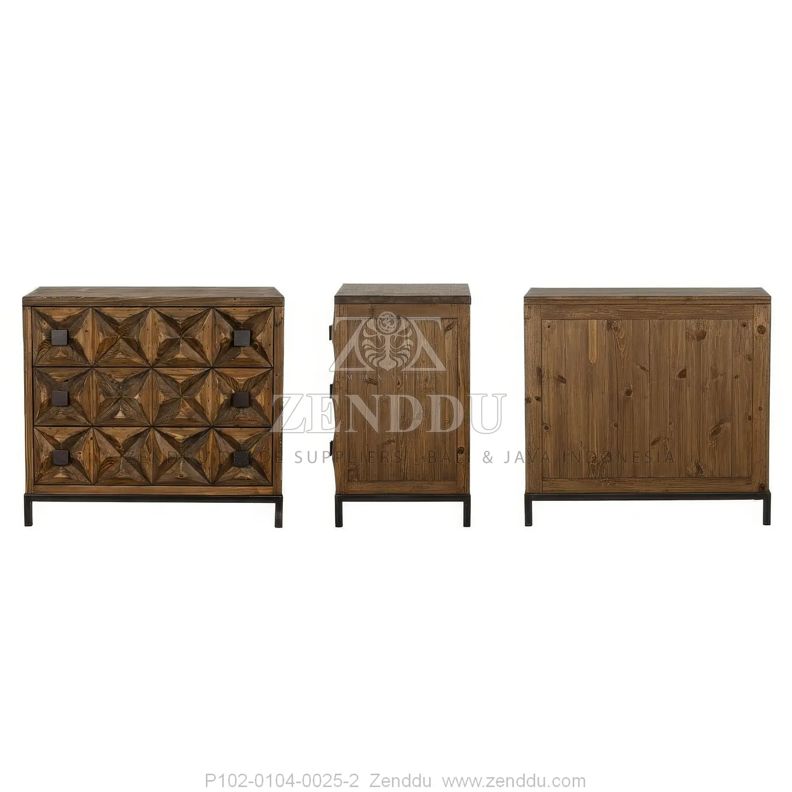 (Cabinet-Chest Of Drawers) Material: Wood: (Mango wood - Kiln Dried, SVLK verified), Finish: (Same as picture), Metal: (Steel), Finish: (Same as picture), Location: Java