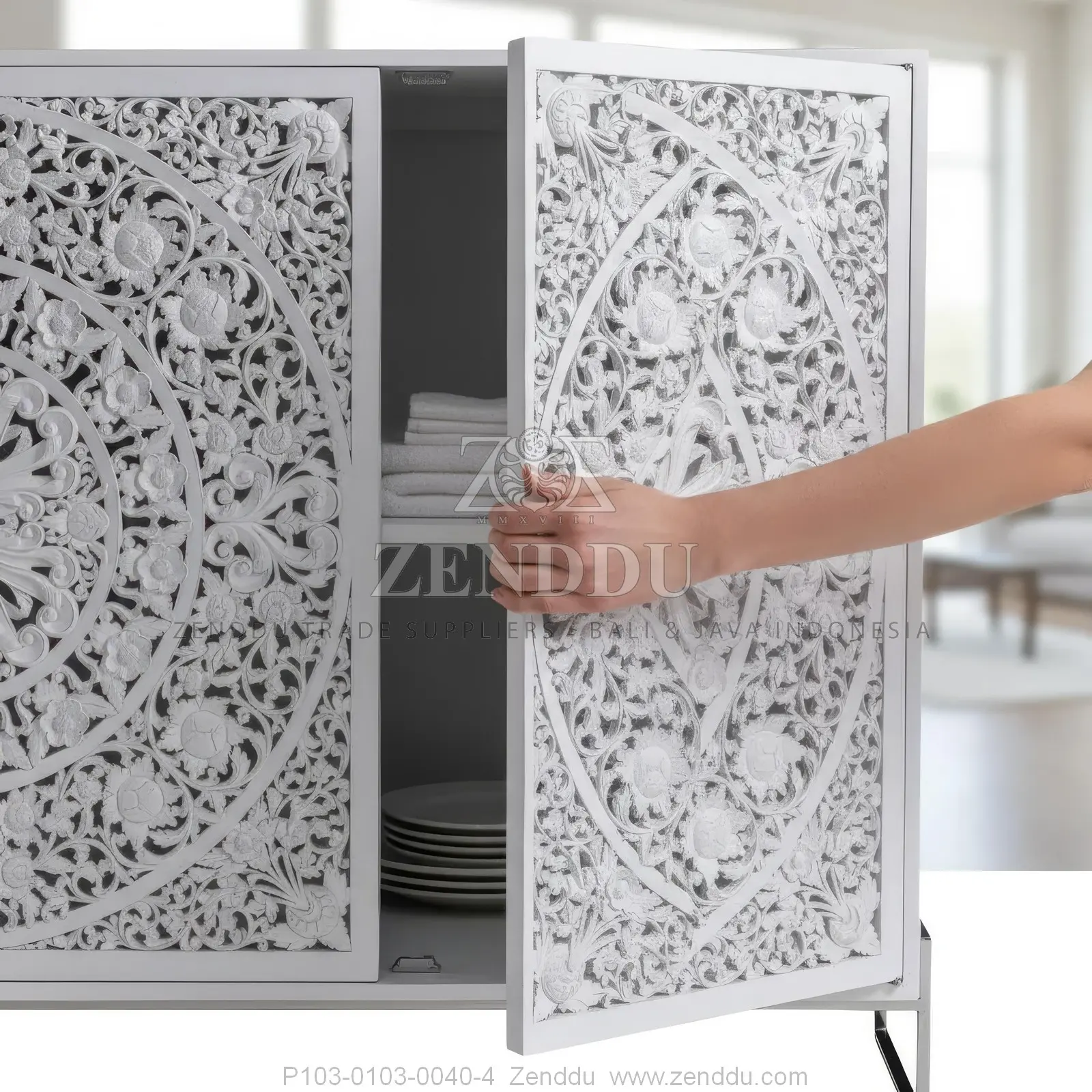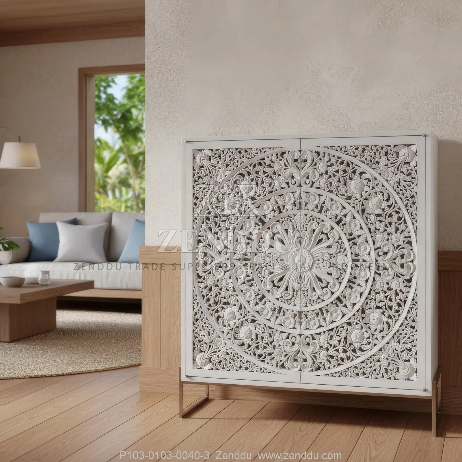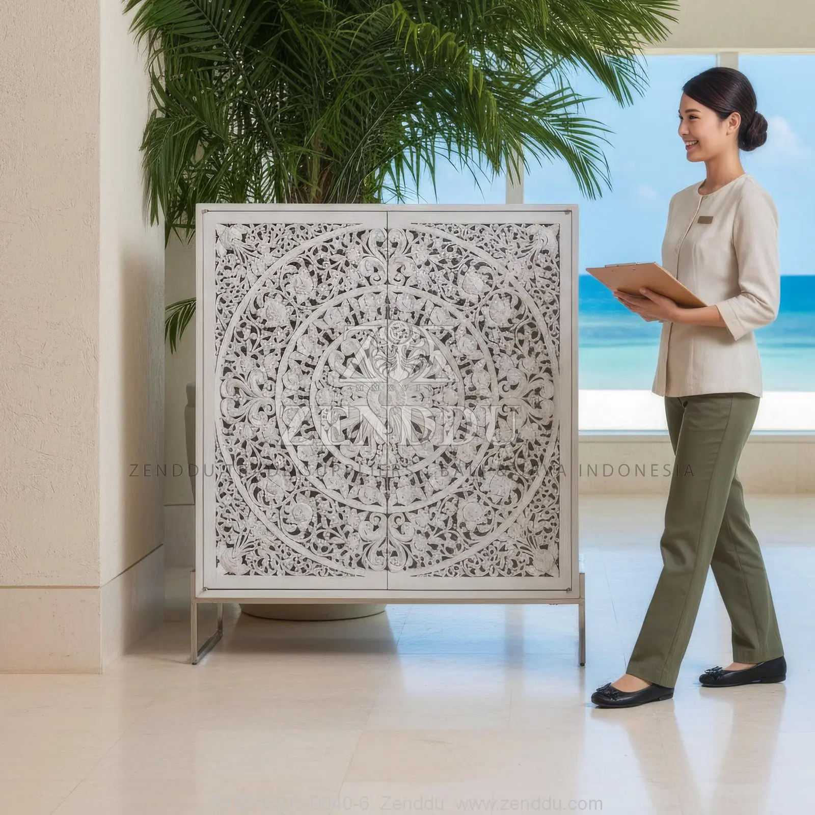 (Cabinet-Floor) Material: Wood: (Mahogany wood - Kiln Dried, SVLK verified), Metal: (Stainless Steel), Location: Java