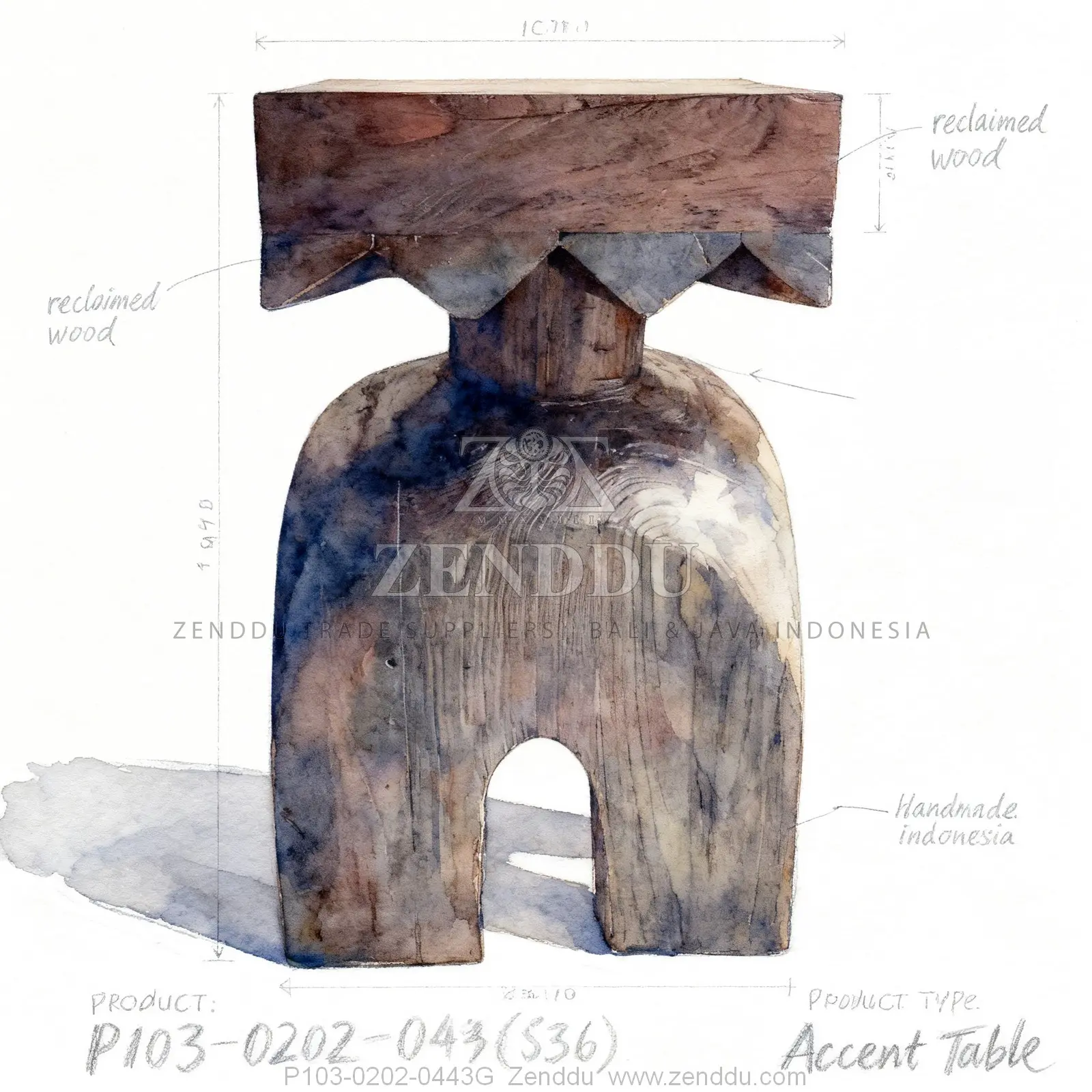 (Accent Table) (For indoor use or covered outdoor area only) Material: Wood: (Reclaimed wood), Finish: (Same as picture), , Location: Java