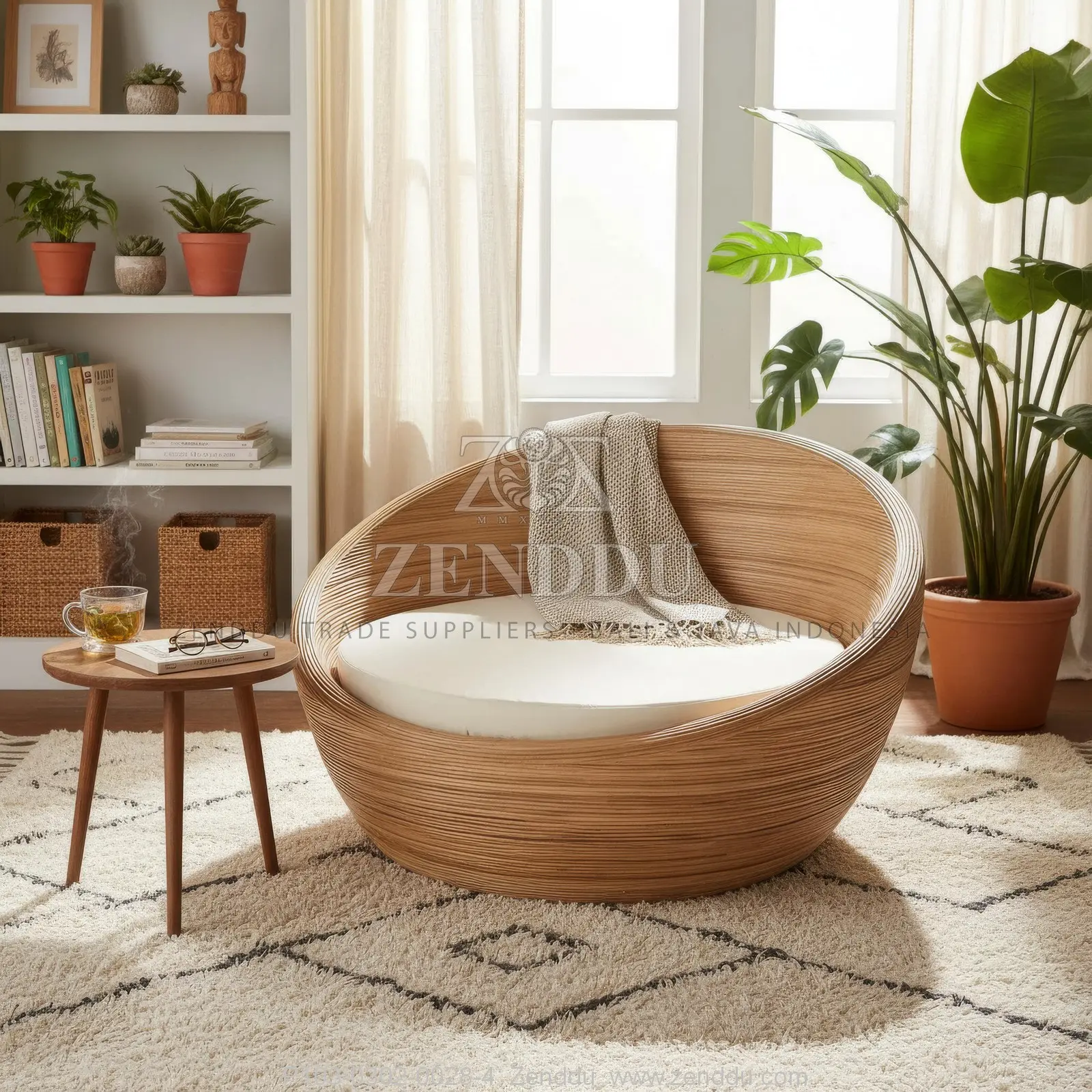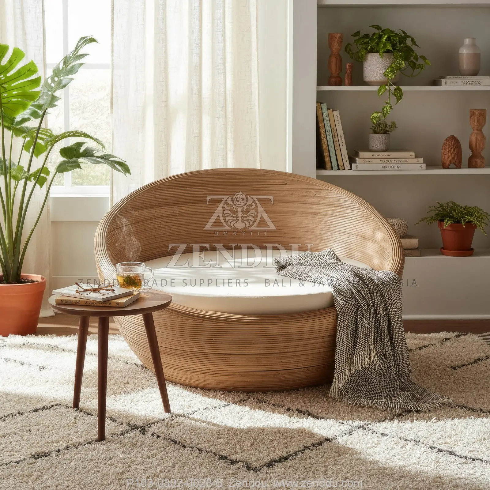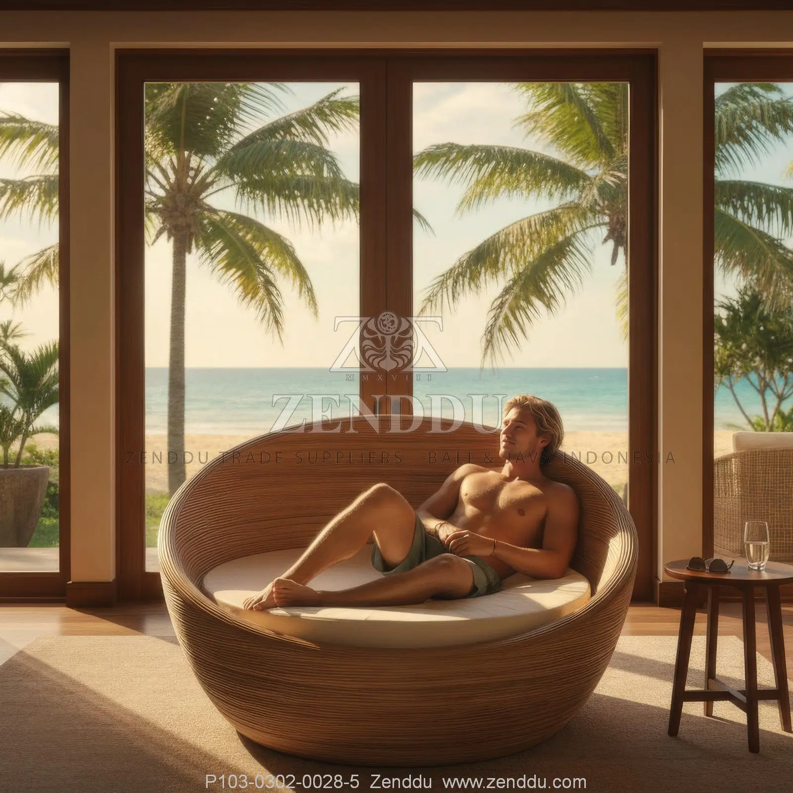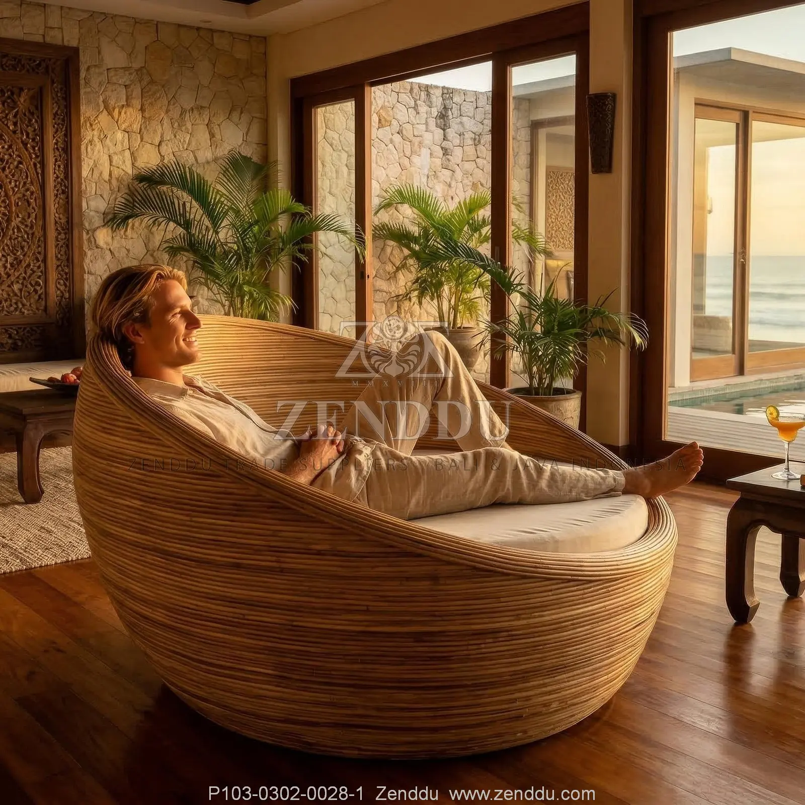 (Daybed) (For indoor use or covered outdoor area only) Material: Natural Fiber: (Rattan Peeled), Fabric: (Fabric Range: A), Foam: (Standard Foam), Location: Java