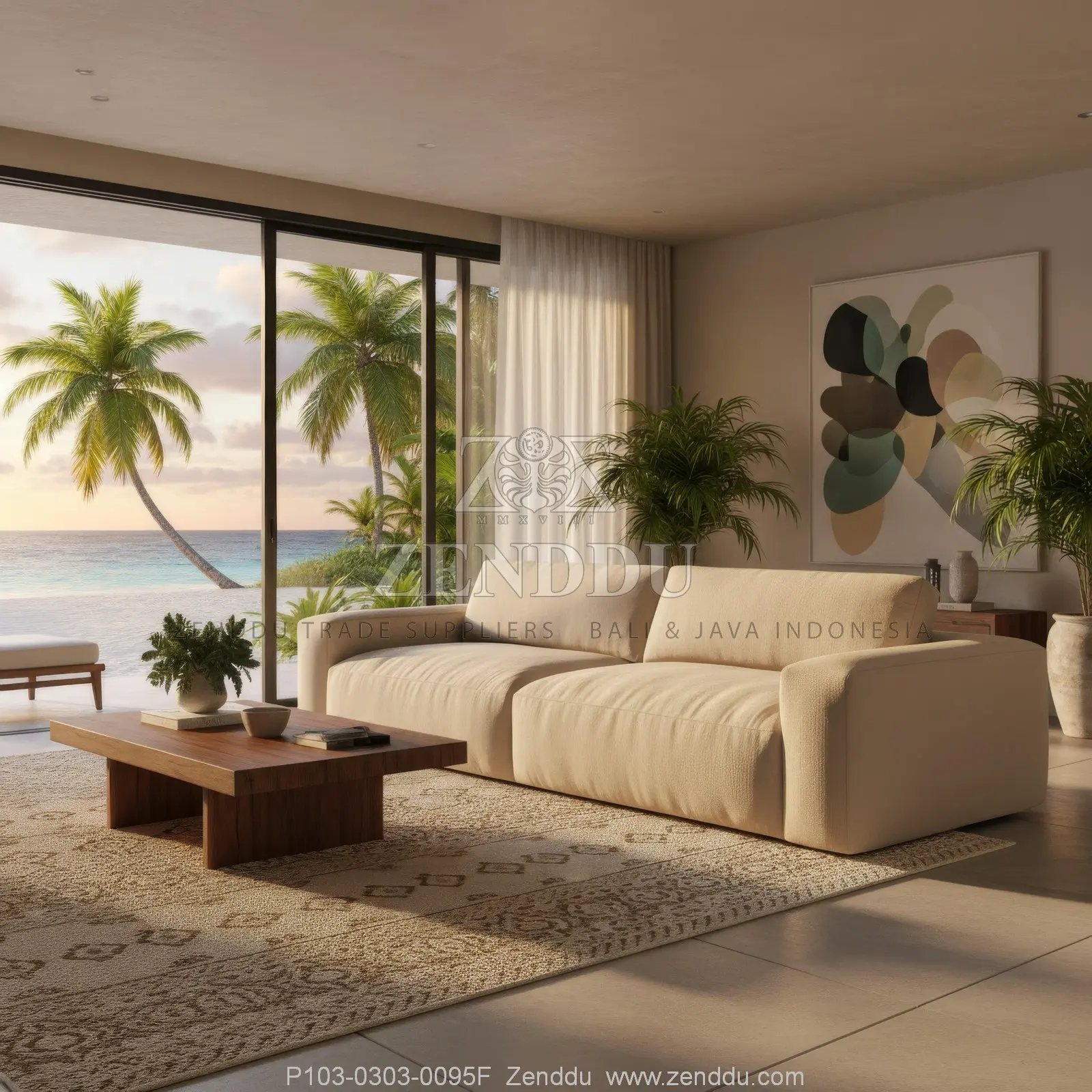 (Sofa) (For indoor use or covered outdoor area only) Material: Wood: (Teak wood Grade B - Kiln Dried, SVLK verified), Fabric: (Fabric Range: A), Foam: (Standard Foam),