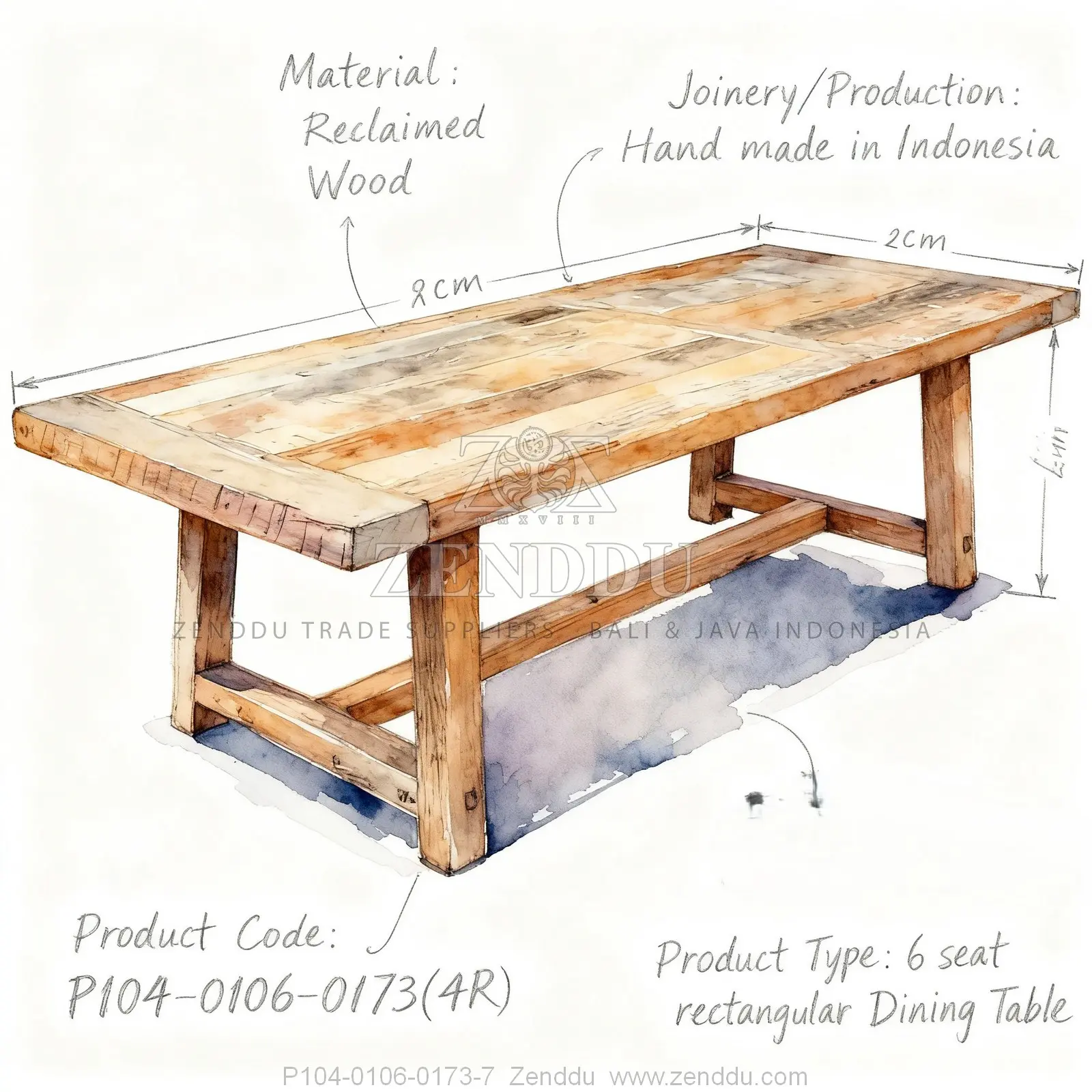 (Dining Table) (For indoor use or covered outdoor area only) Material: Wood: (Reclaimed wood), Finish: (Same as picture), Location: Java