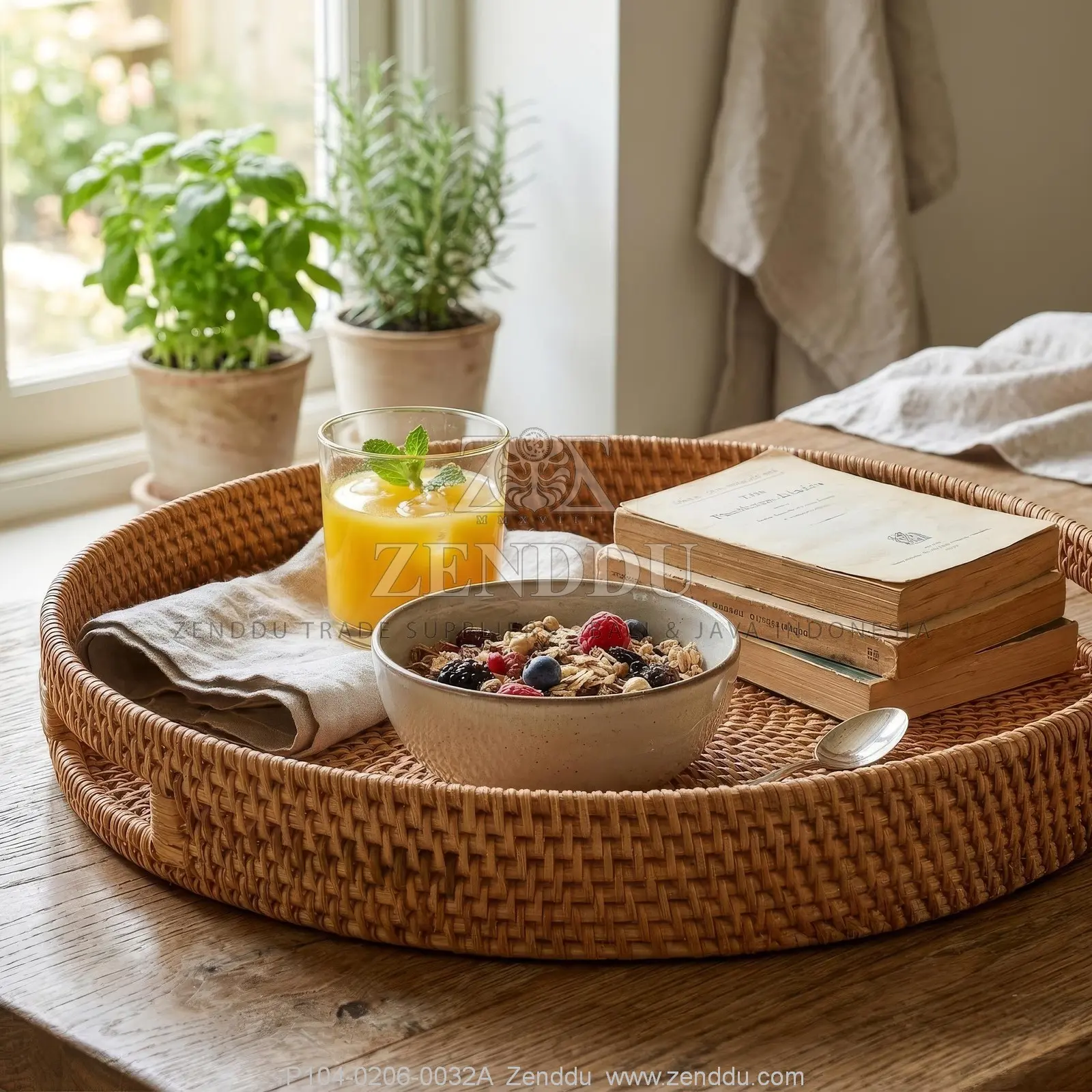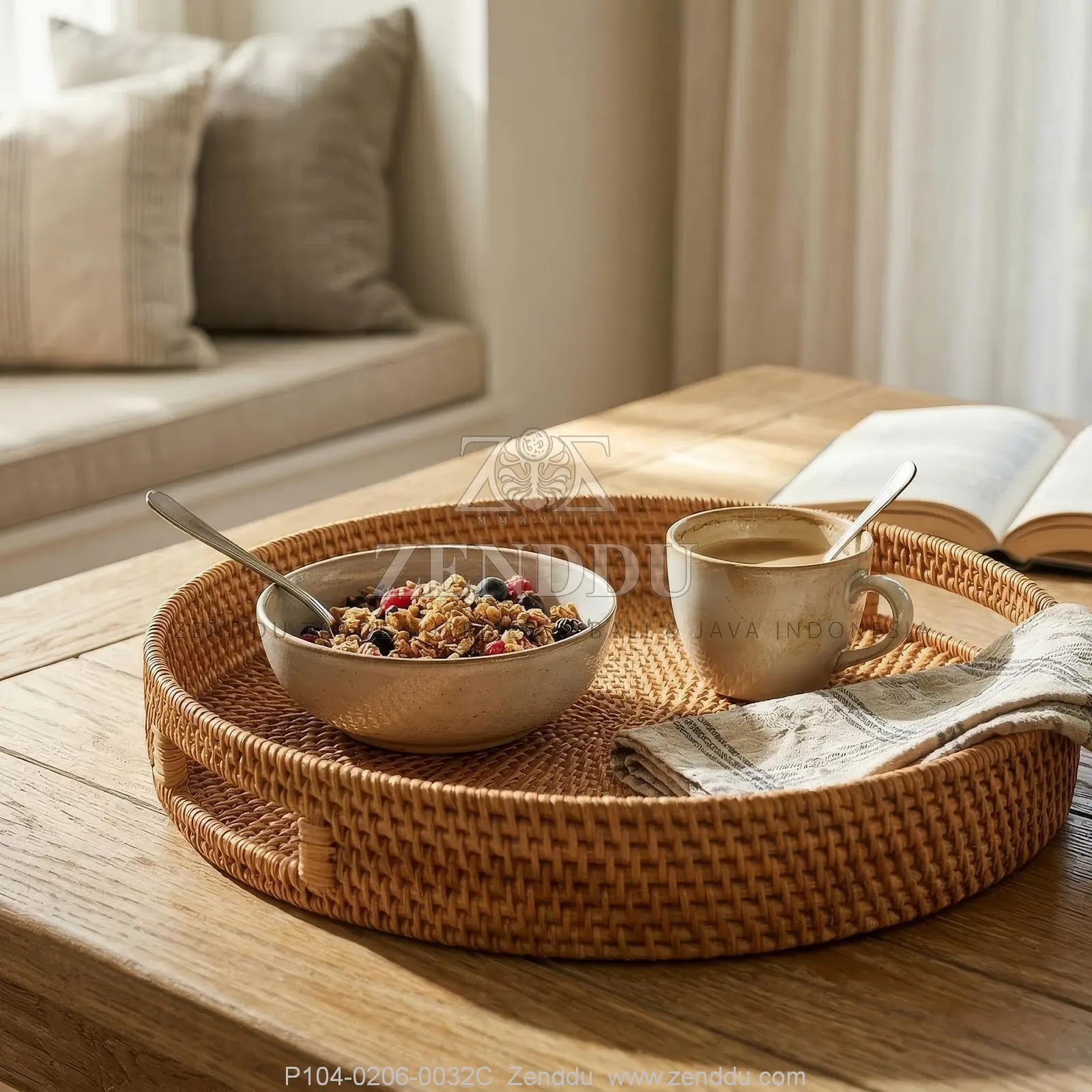 (Tray) Material: Natural Fiber: (Rattan Peeled), Finish: (Same as picture), Location: Bali